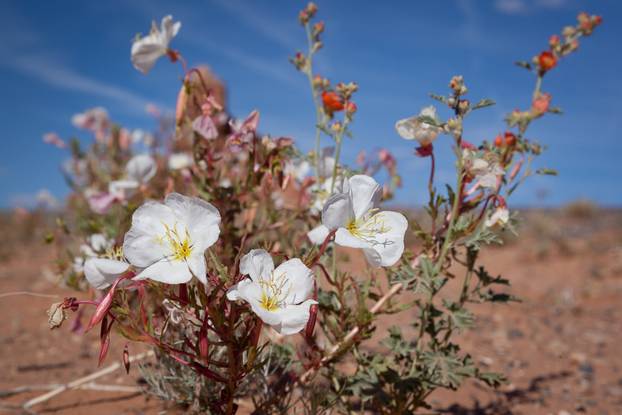 Images taken during a workshop I held in Southern Utah. In spring during April and May, the desert floor teems with new life with wild flowers and succulents providing colourful displays. These flowers bloom next to sheltered rocks or from the macrobiotic soil which clings to bare rock and takes hundreds of years to form.